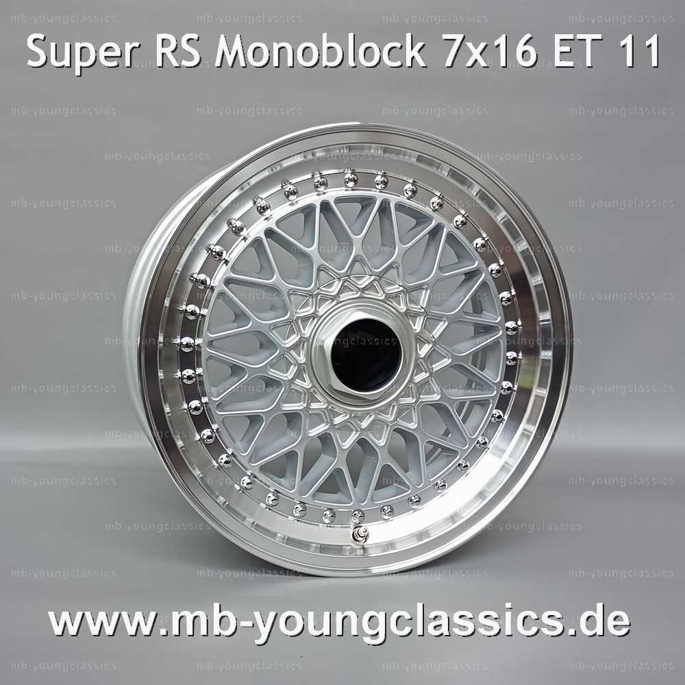 4 pcs Super RS Mesh 7×16 ET 11 silver/diamond cut monoblock in split rim look
